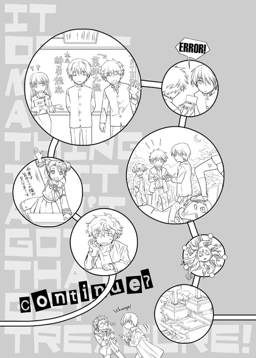 ペン入れ中です。ようやく前フリすごろく2p分できました。1枚目のと見開きでつながってます。1枚目よりコマが詰まってなくて空いちゃってる感じなので、ワンパターンな気がしつつもとりあえずバックに文字を入れてみたり。本文漫画はいまだ手付かずです。こ、これから!